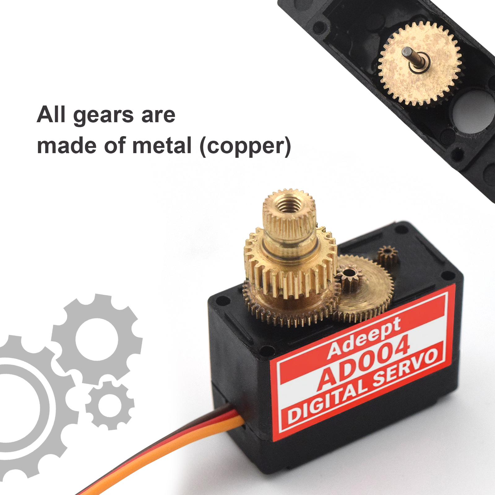 Out of the box, the servo is equipped with a 250mm PVC cable (with red/Vcc, black/GND, yellow/Signal wiring) and a standard 25T output shaft, ensuring easy installation. Experience precise control for your aircraft, cars, boats, and other automated creations with the dependable AD004 Micro Digital Servo.